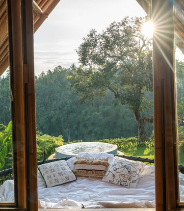 Celebrate love in paradise with our romantic honeymoon bed decoration at Damuh Alam. Thoughtfully designed with fresh tropical flowers, soft linens, and heartfelt details, this intimate set-up creates the perfect atmosphere for newlyweds or couples.