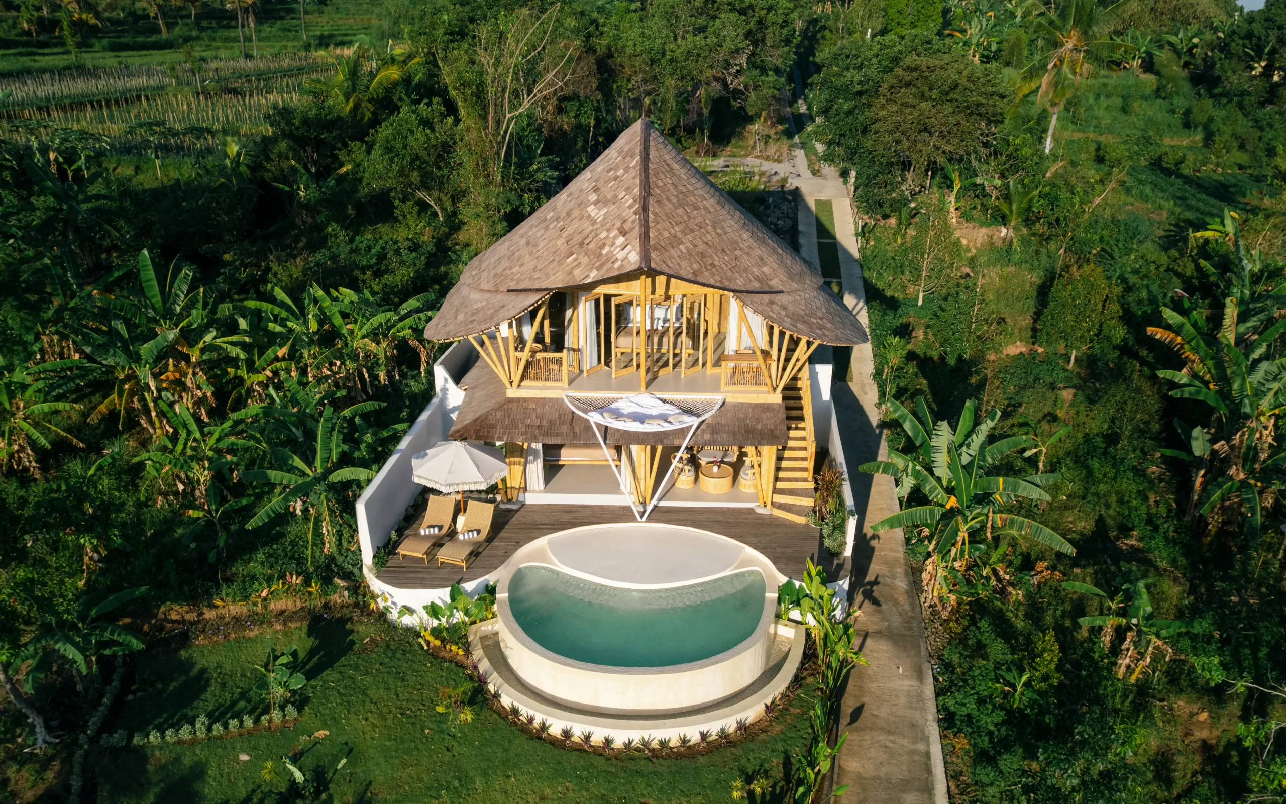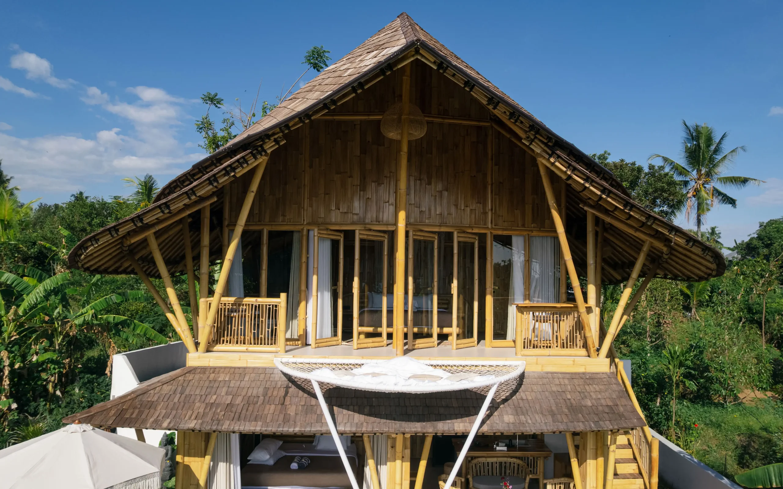 Wake up to the magic of Bali in this handcrafted 2-bedroom bamboo villa nestled in the heart of Sambangan Eco Village. Surrounded by lush jungle and rolling hills, this eco-conscious retreat offers stunning sunrise views, peaceful nature sounds, and an immersive tropical experience.