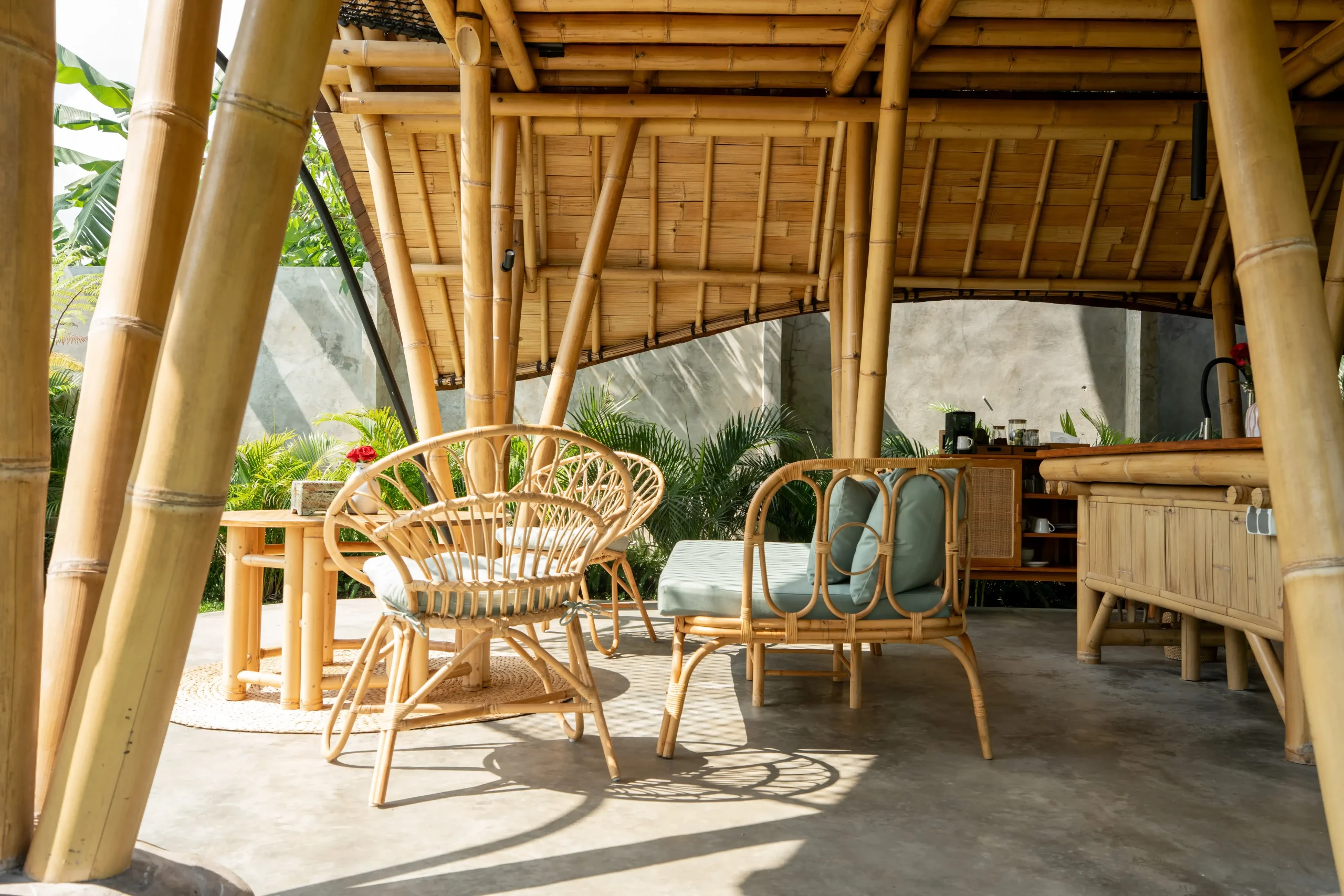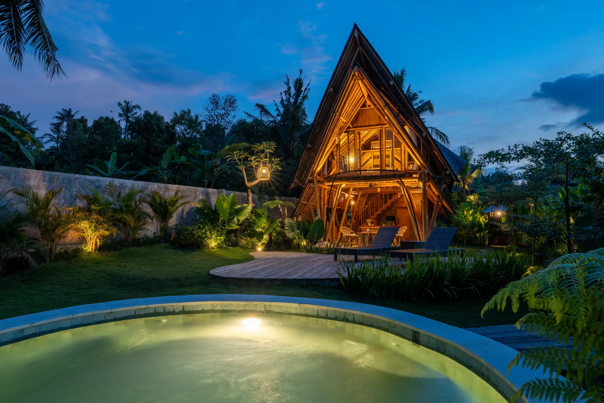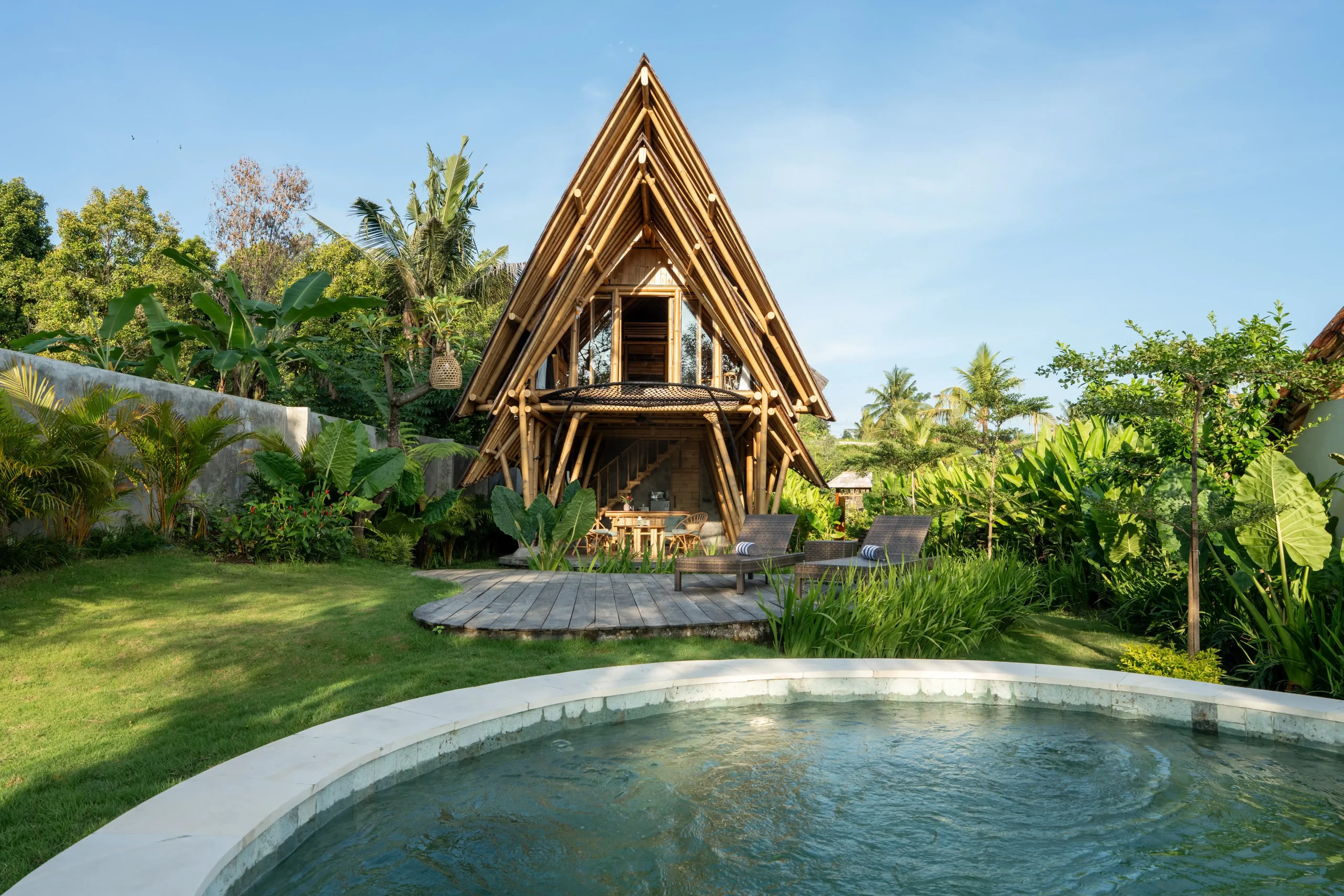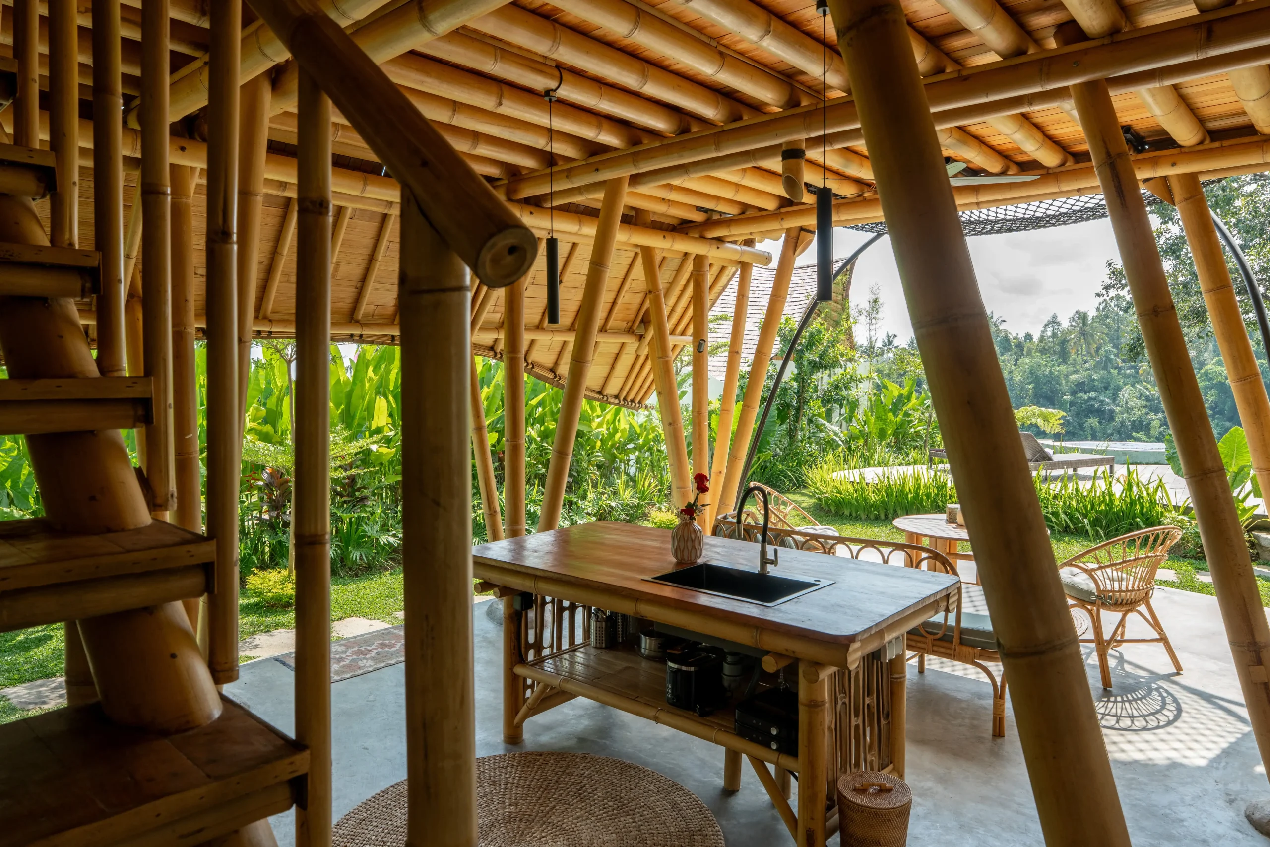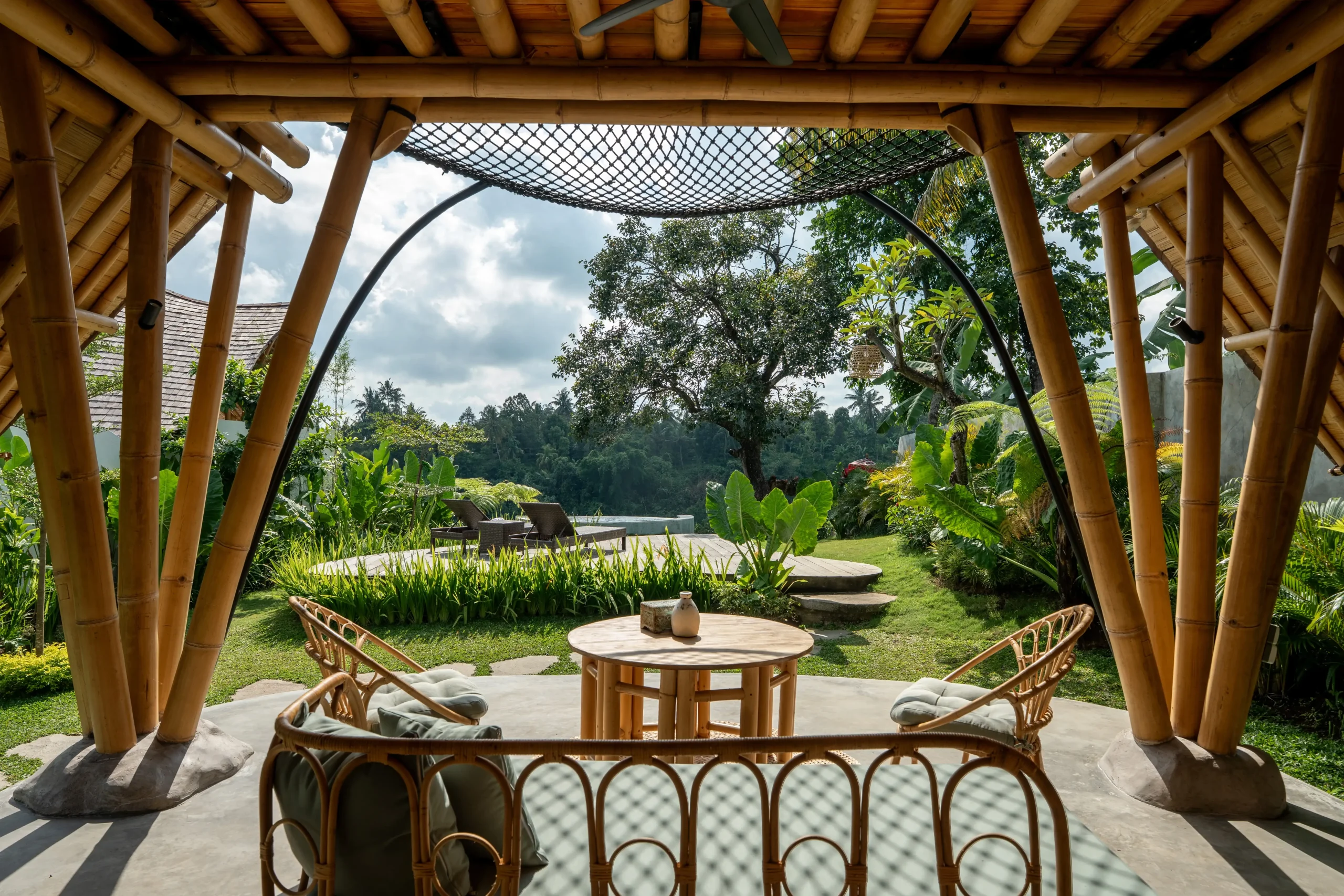 Stay and experience the unique and exclusive design of our bamboo villa, offering stunning sunrise and hill views in the heart of Sambangan Eco Village. This one bedroom villa features an exclusive design crafted entirely from sustainable bamboo, with an ironwood roof and beautiful teak wood flooring. It’s a unique place for honeymooners, peace seekers, writers, or anyone looking for relaxation and tranquility.