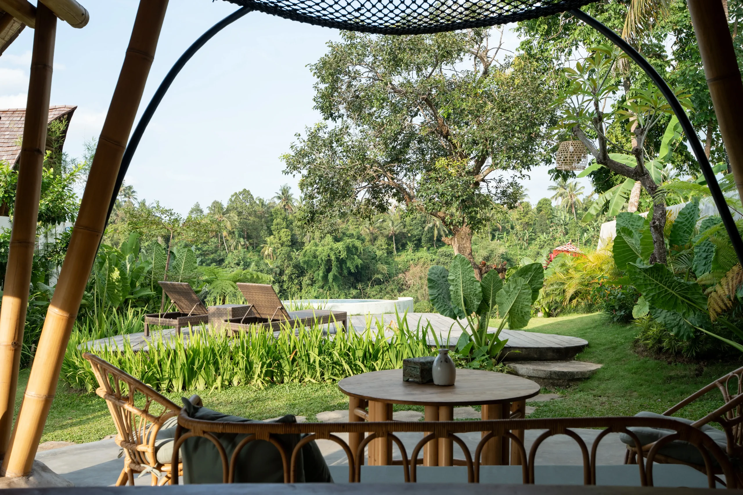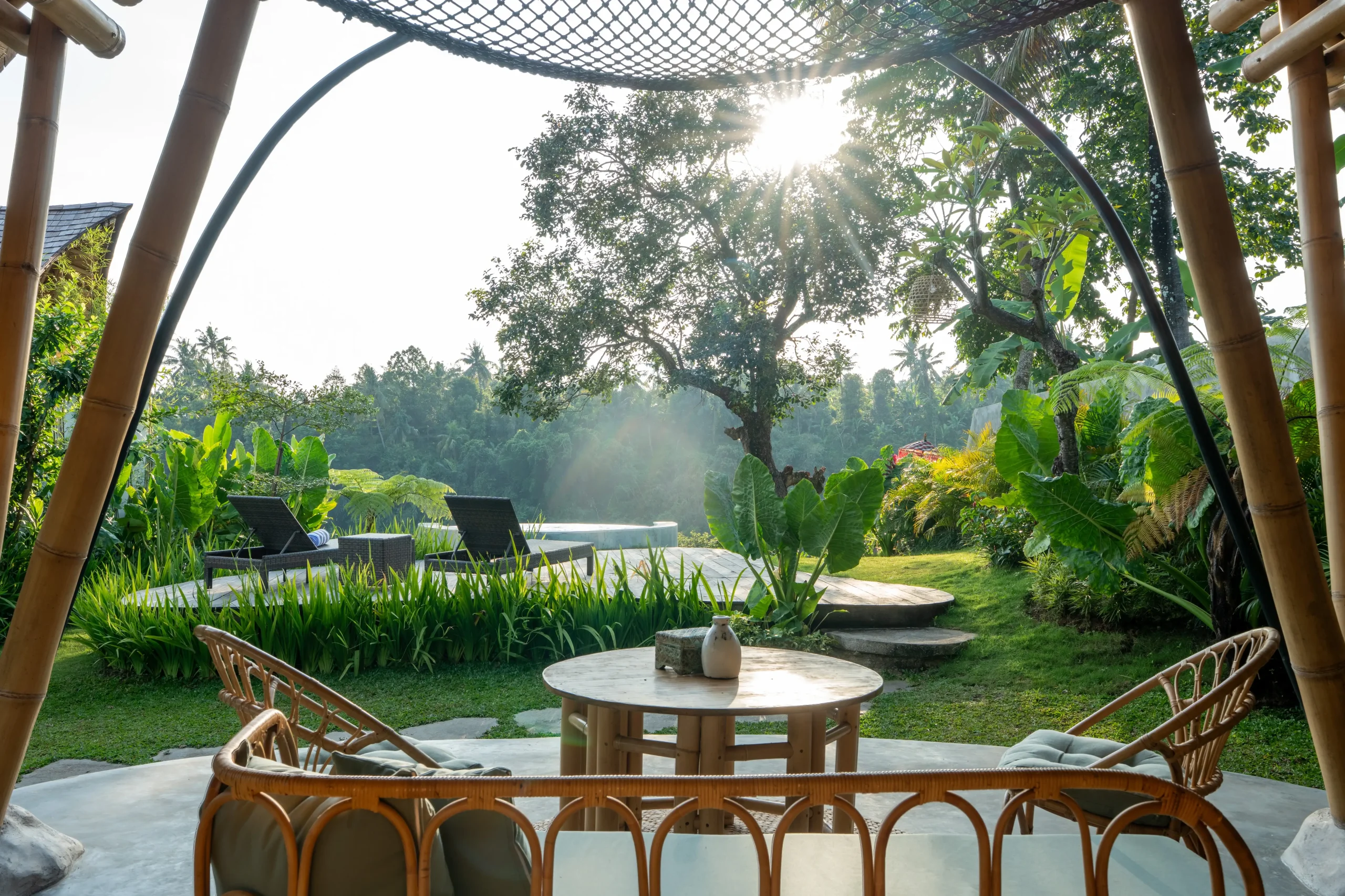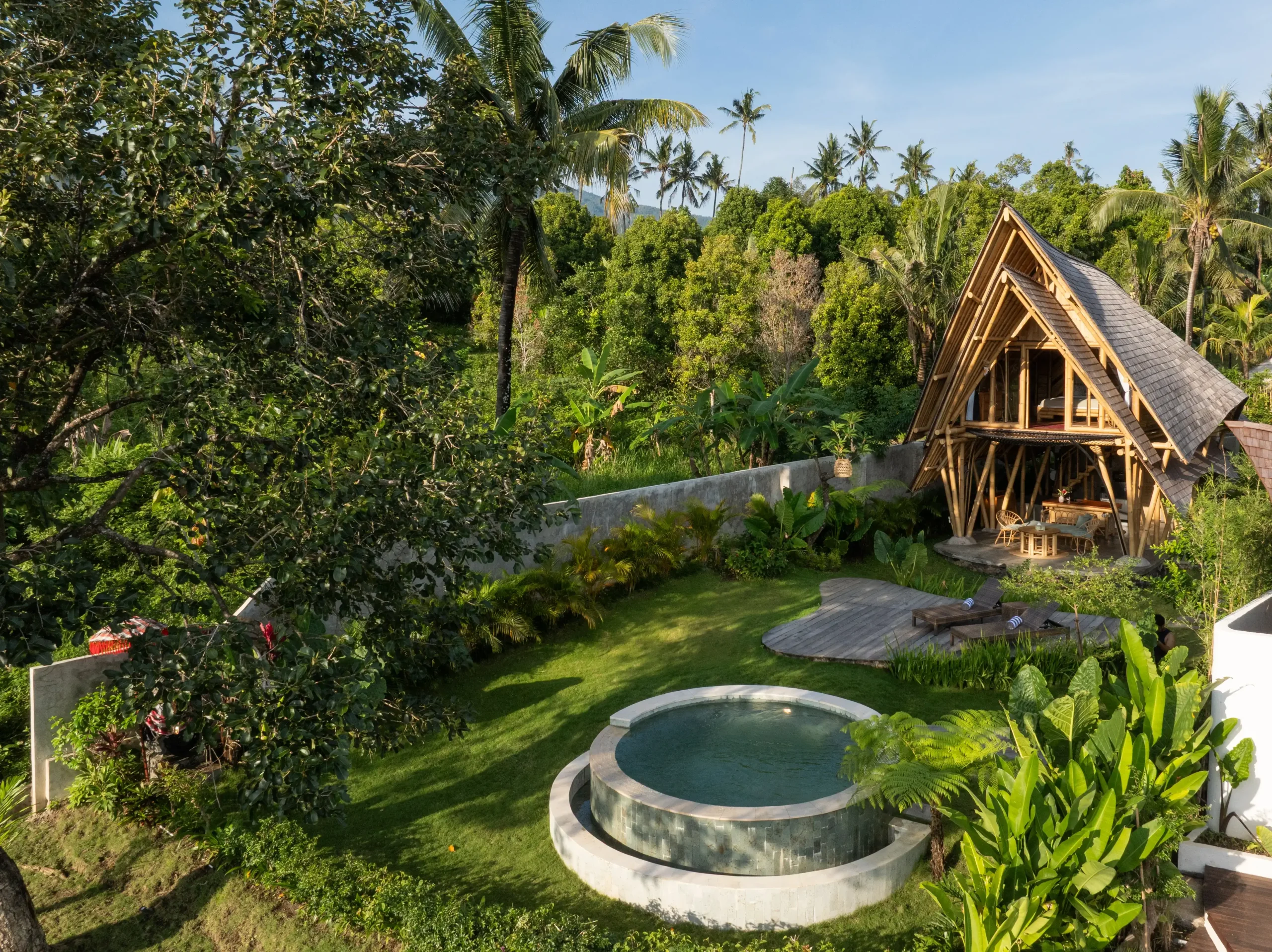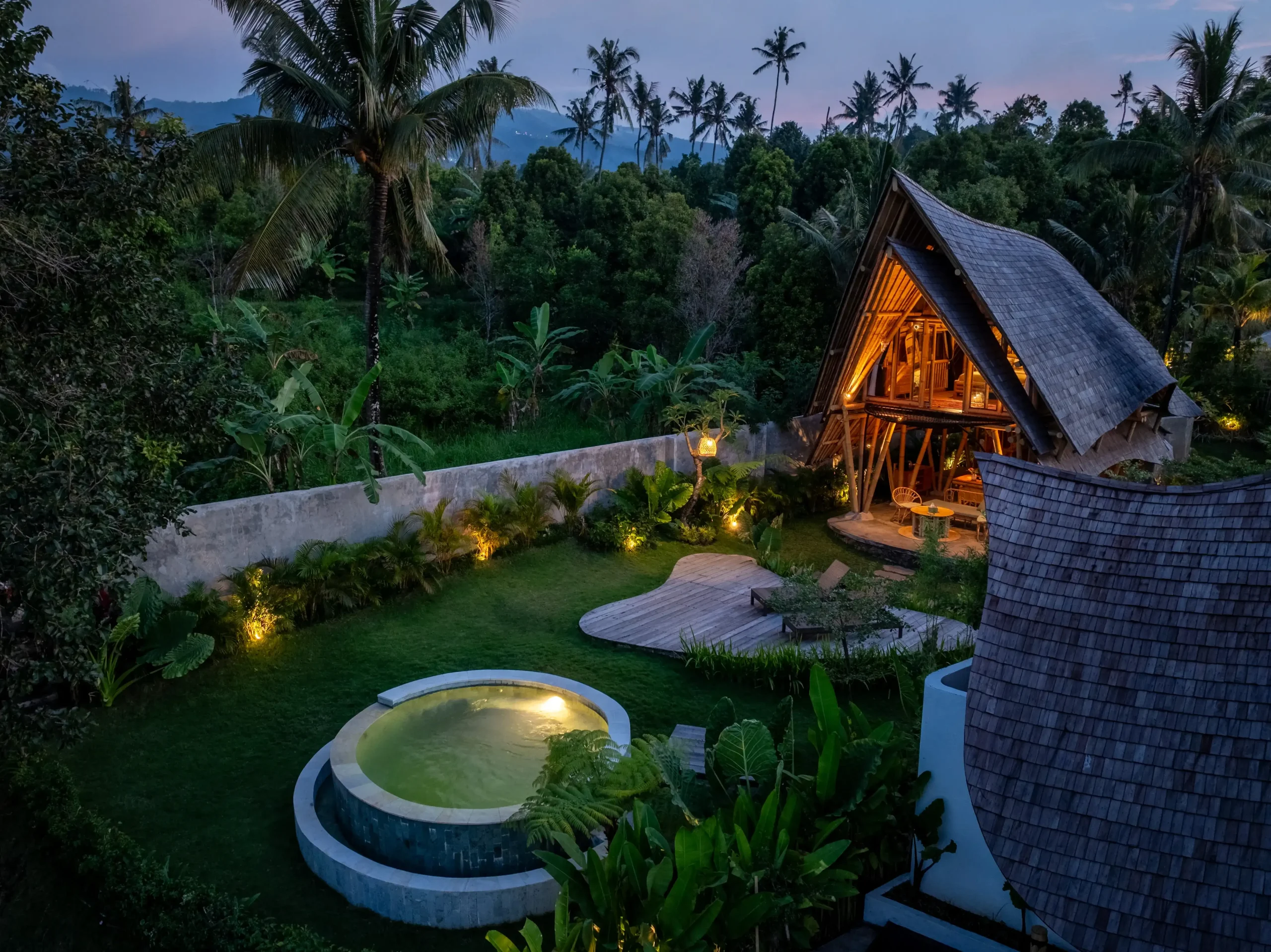 Stay and experience the unique and exclusive design of our bamboo villa, offering stunning sunrise and hill views in the heart of Sambangan Eco Village. This one bedroom villa features an exclusive design crafted entirely from sustainable bamboo, with an ironwood roof and beautiful teak wood flooring. It’s a unique place for honeymooners, peace seekers, writers, or anyone looking for relaxation and tranquility.